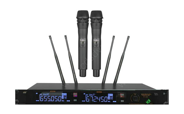 產 品 特 性:  1) 采用真分集接收係統,係統抗幹擾性能極佳,信號接收能力強大。  2)采用飛梭旋鈕,設有中英文兩種語言功能選擇;32級數字電子音量控製,保證兩邊通道的聲音一致性  3) 具有自動搜頻操作跟一鍵鎖定功能,有效搜索並鎖